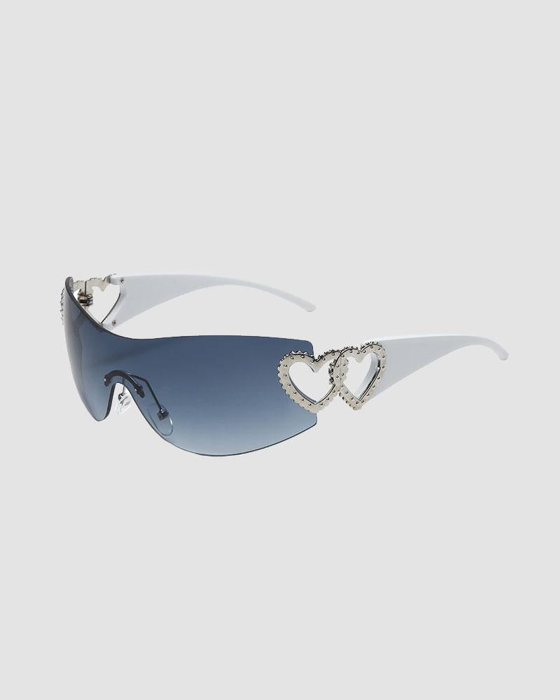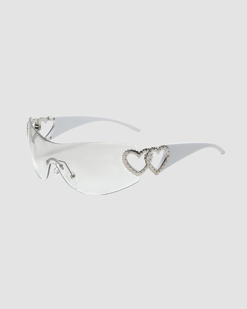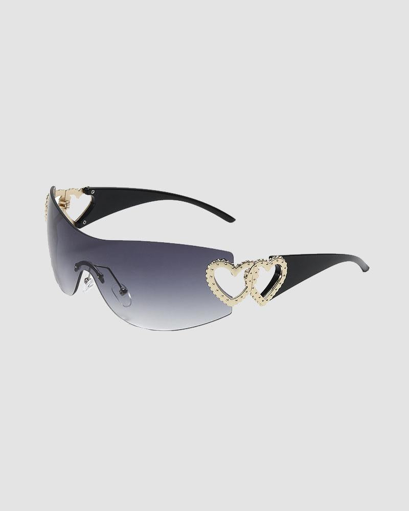 Details: A pair of sunglasses with double heart design