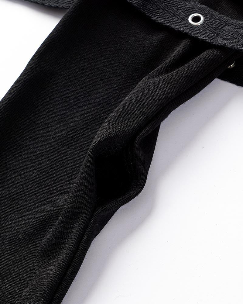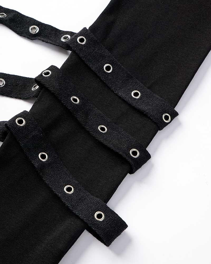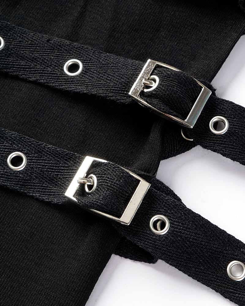 Detail: A pair of gloves with belts design