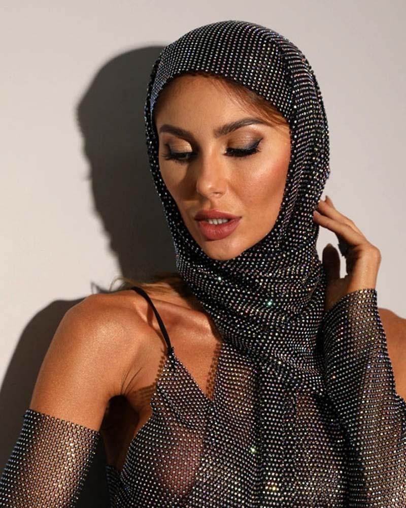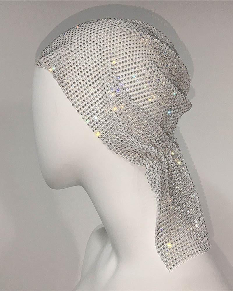 Details: Metallic hair cap with glittering design